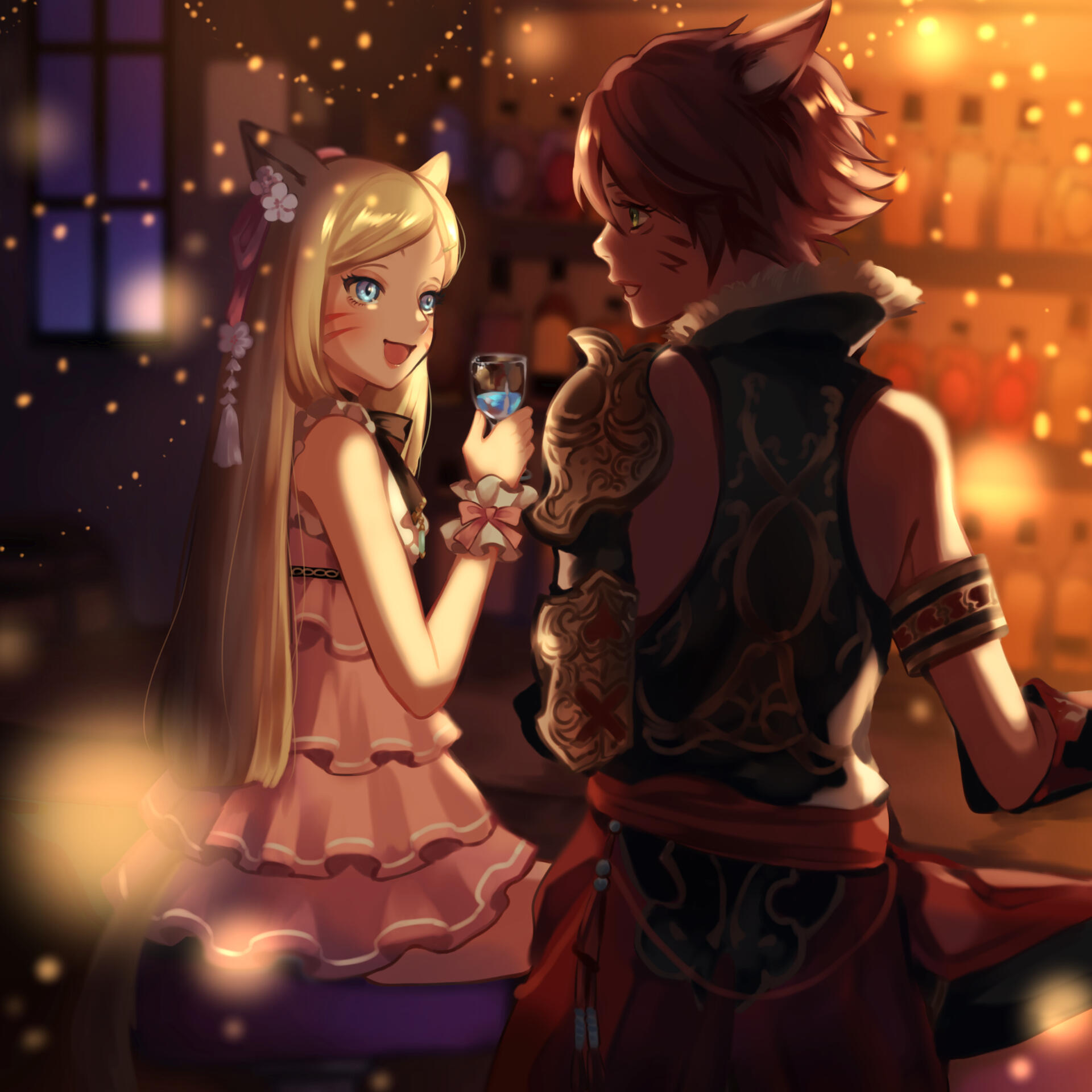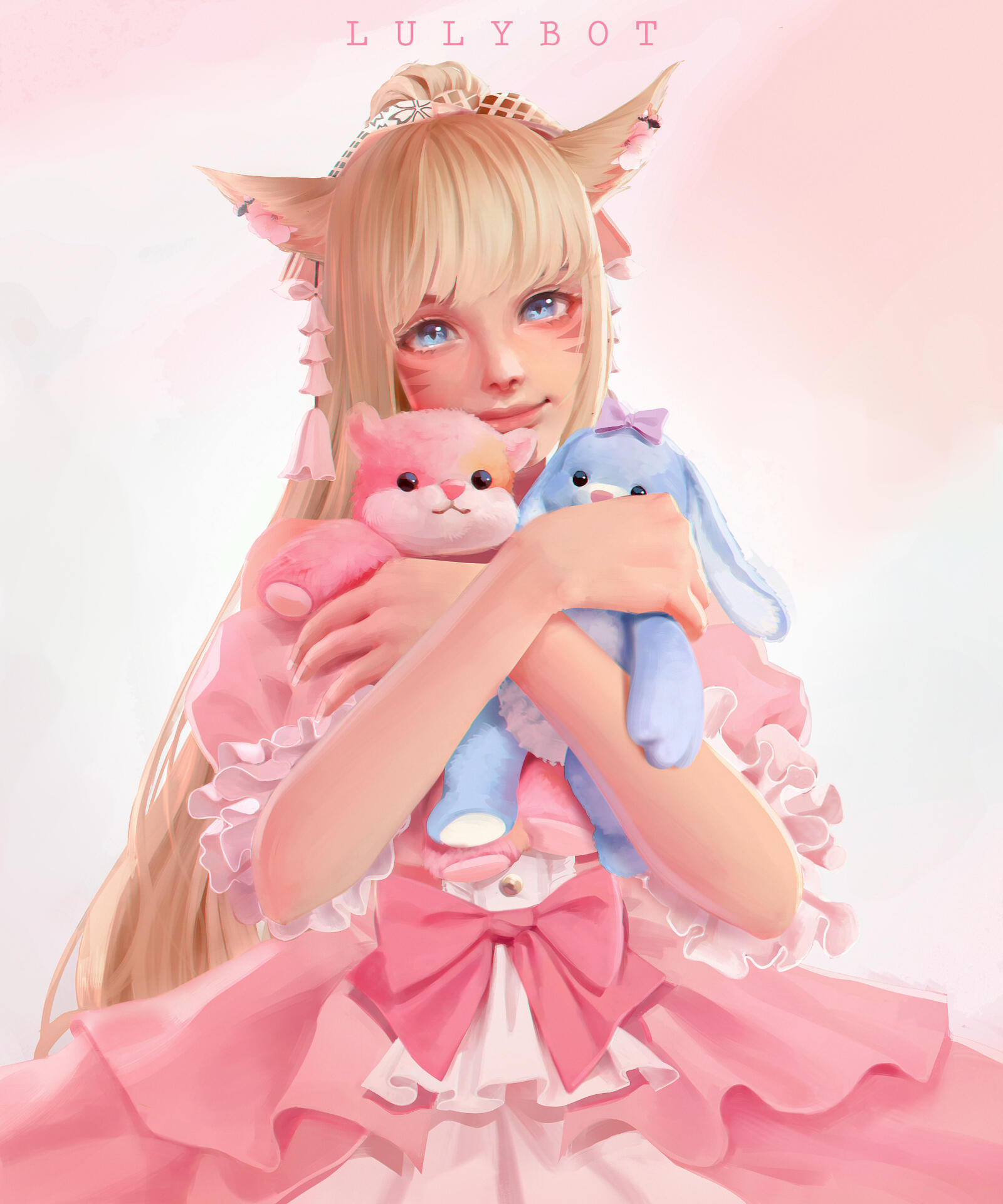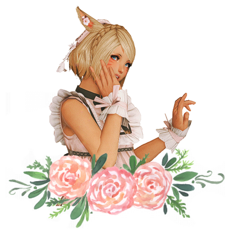 Despite being tiny in stature, it's difficult to miss this miqo'te in a crowd with her penchant for rose coloured garb. Animated and cheerful in nature, it seems as if nothing at all bothers the blonde as she prances around with a skip in her step. Heart worn on her sleeves, her ears often give away her true feelings that lay beneath the cheerful mask she adorns which suggests that perhaps not everything is entirely as rosy as she paints it out to be.