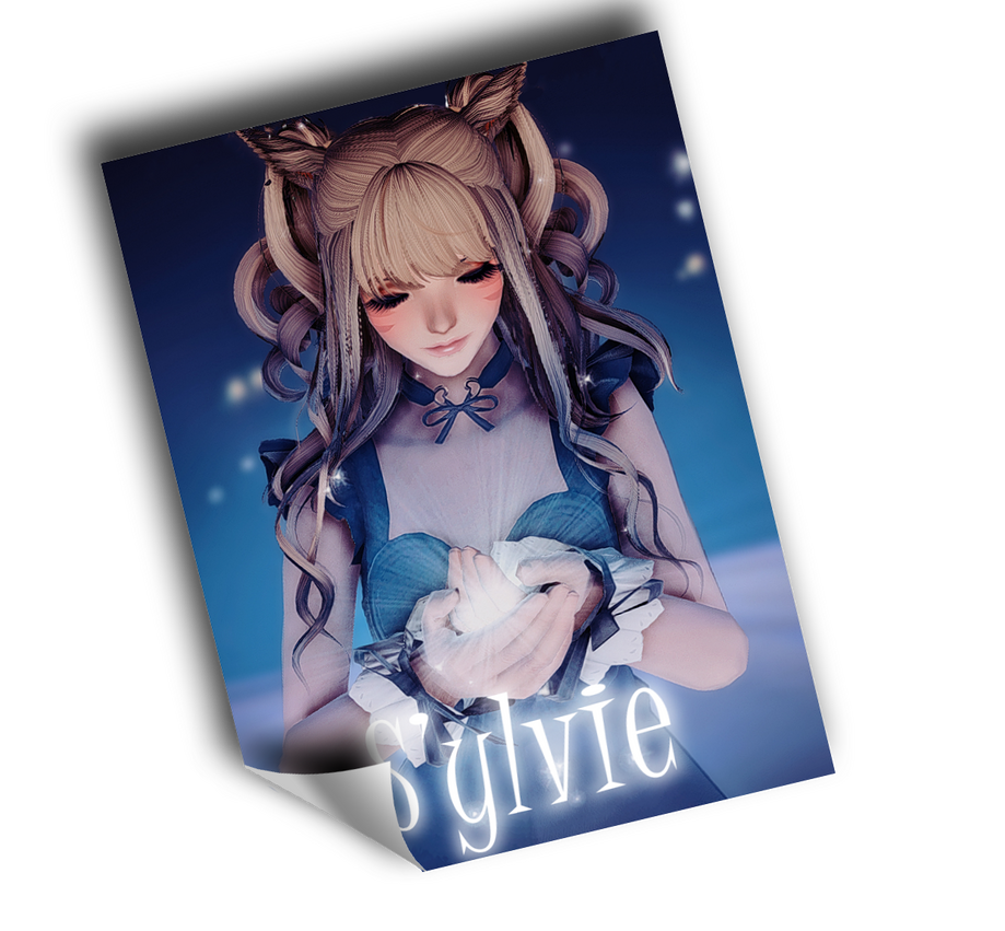 Once upon a time, S'ylvie was an 'idol', having been inspired by the Songbirds of Ul'dah. There's no need to be the best singer, the best dancer - as long as you're enthusiastic and cheery you're fit for purpose. Back in the early days of her career she'd be at Sapphire Avenue and the Quicksand every day, orchestrion rolls and posters in tow in a bid to promote herself as a fairly unknown performer. Having retired from the idol lifestyle out of the blue, it's not unusual for some people familiar with her to wonder why.Perhaps you've seen her warbling a song about hope or peace or love, or perhaps you've seen her face on a poster or modelling materials she's used to promote herself? Or perhaps you're intrigued as to why a once enthusiastic idol retired as her career climbed to new heights. Who knows?